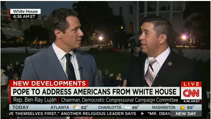 Earlier today, Congressman Ben Ray Luján spoke to CNN’s Chris Cuomo on the South Lawn ahead of Pope Francis’ welcome at the White House. The interview covered the Pope’s historic visit, its implications for Congress on topics including immigration reform, and most importantly, the Congressman’s deep pride and excitement for the Papal visit as a Catholic.