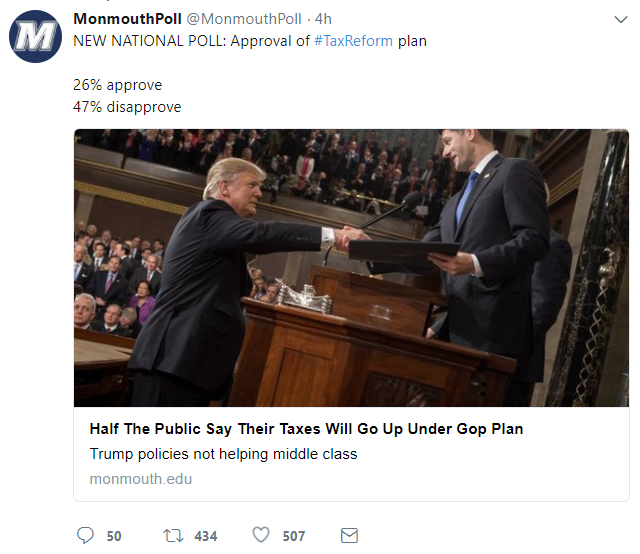 - Voters ay 61%-34% that the tax plan favors the rich at the expense of the middle class