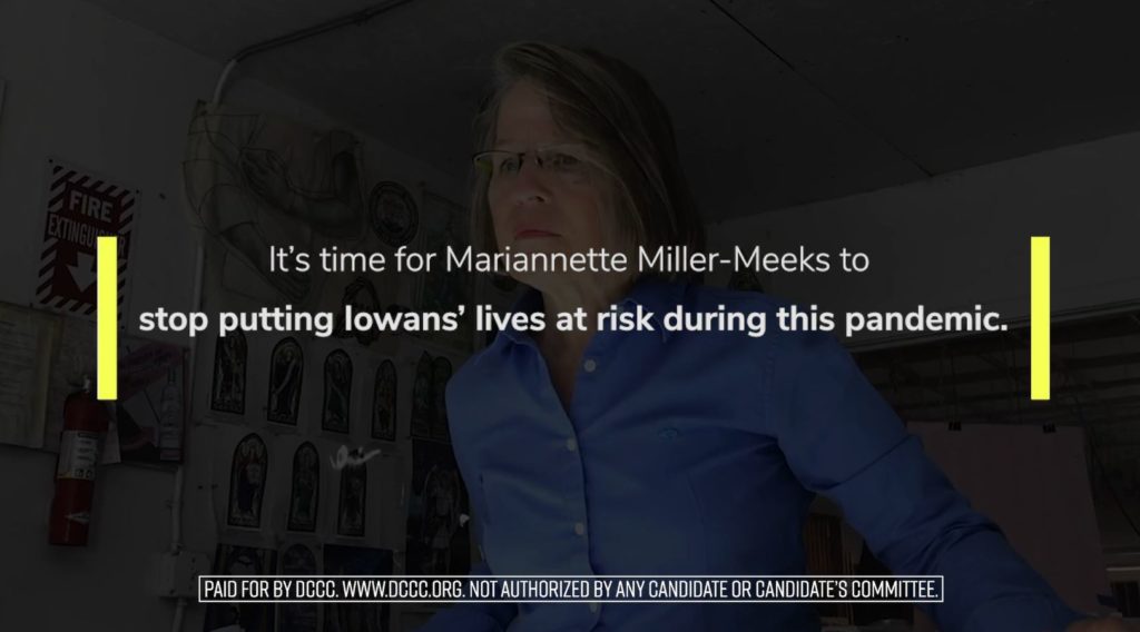 “Iowans deserve to know that in the middle of a global pandemic, Mariannette Miller-Meeks recklessly touted a drug that scientific evidence shows caused even more deaths in coronavirus patients. If Miller-Meeks is already putting politics ahead of patients now, how can Iowans trust her to put them ahead of partisan gamesmanship in Washington?” asked DCCC Spokesperson Brooke Goren.