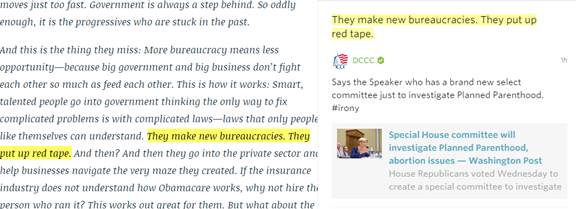 Paul Ryan blamed Democrats for creating new bureacracies, yet his House of Representatives just created a Select Committee to conduct yet another investigation into Planned Parenthood.