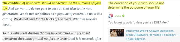 Paul Ryan said that ‘the condition of your birth should not determine the outcome of your life,’ yet he vehemently opposes the DREAM Act and horse-traded away Comprehensive Immigration Reform to get House Freedom Caucus buy-in for his Speakership.