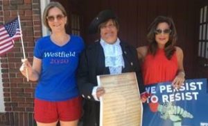 - “Protestors congregated around Lisa O’Dwyer, a member of Westfield 20/20, on Wednesday evening as she, dressed in full colonial garb, read a proclamation demanding that Congressman Leonard Lance put country before party during the Trump Administration.”