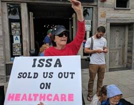 - Video: Protestors attend the Oceanside Independence Parade on July 1, donning signs and chants holding him accountable for his voting record