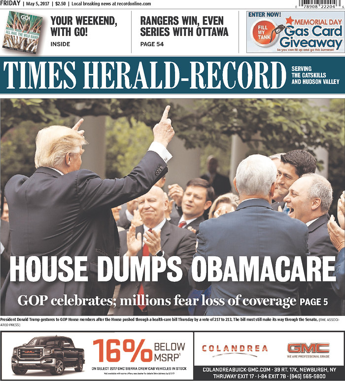 - NY-19: Times Herald Record: House Dumps Obamacare; GOP celebrates; millions fear loss of coverage