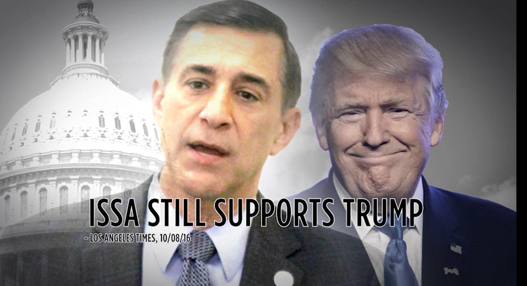 Today the DCCC is on air with a new TV ad highlighting vulnerable Congressman Darrell Issa’s close connections to Donald Trump, including news last week that Trump added Issa to his National Security Advisory Council – the very same day the “Trump Tapes” were released.