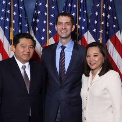 Now it seems Huang is happy to be cozying up to another rabidly anti-health care Senator, Tom Cotton of Arkansas (pictured with Huang above).